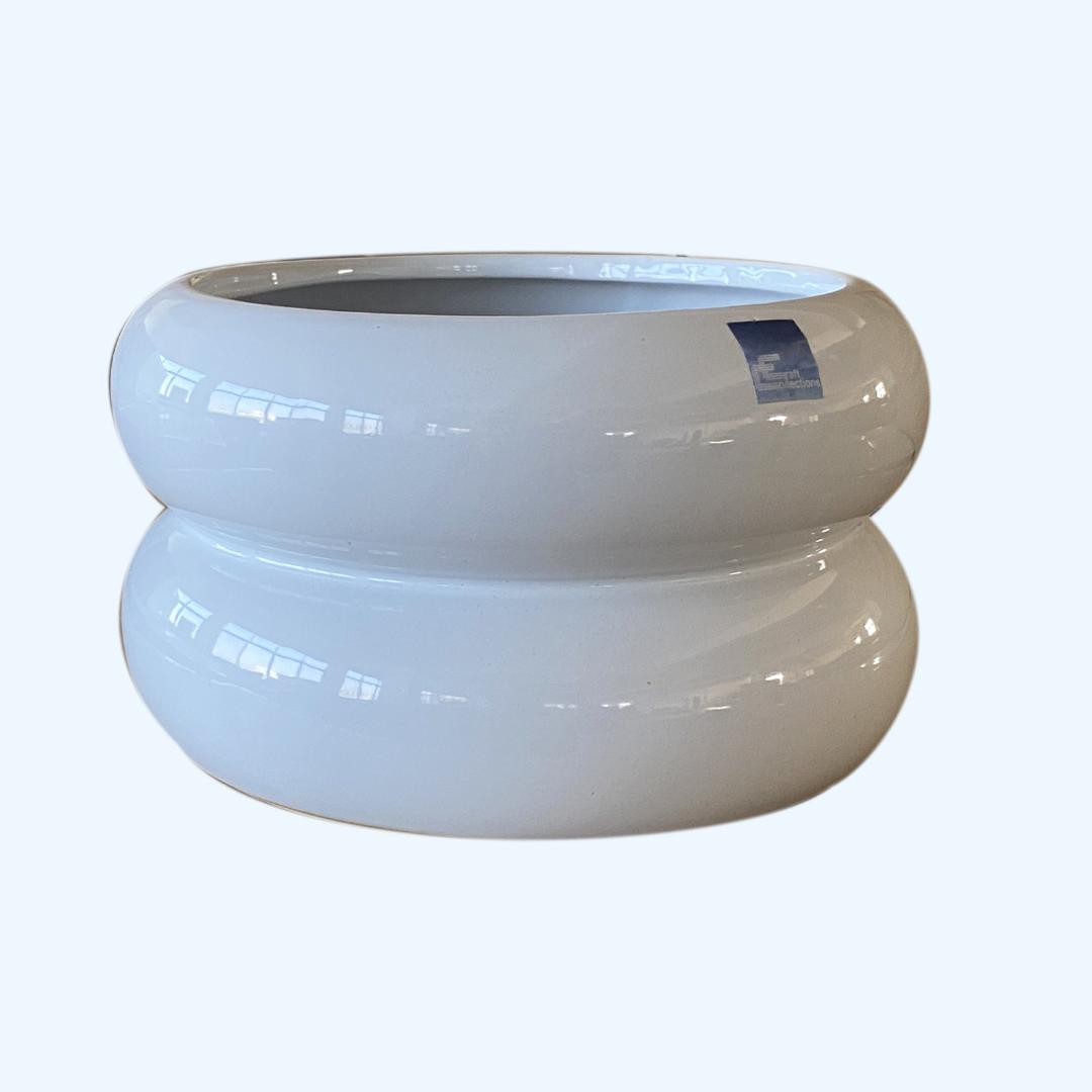 Elevate your space with this modern, glossy white ceramic planter or decorative Pot. Featuring a distinct double-bulge silhouette, that blends clean lines with a bold, contemporary form. Its high-gloss finish reflects light beautifully, enhancing its smooth, seamless curves. The wide-open top makes it perfect for use as a planter, low-profile centerpiece, or decorative storage vessel. Ideal for minimalist, modern, or Scandinavian-style interiors, this piece is as much an art object as it is functional.
