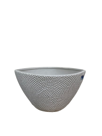 The Midnight Noir Textured Ceramic Pot can add a touch of luxury to your decor with this textured white decorative pot. Crafted from high-quality ceramic, this bowl features a dimpled or hammered texture that radiates in concentric circles, creating an eye-catching visual effect. Its sleek, Oval conical shape with a wide-open top and narrow base add elegance and sophistication to any space.